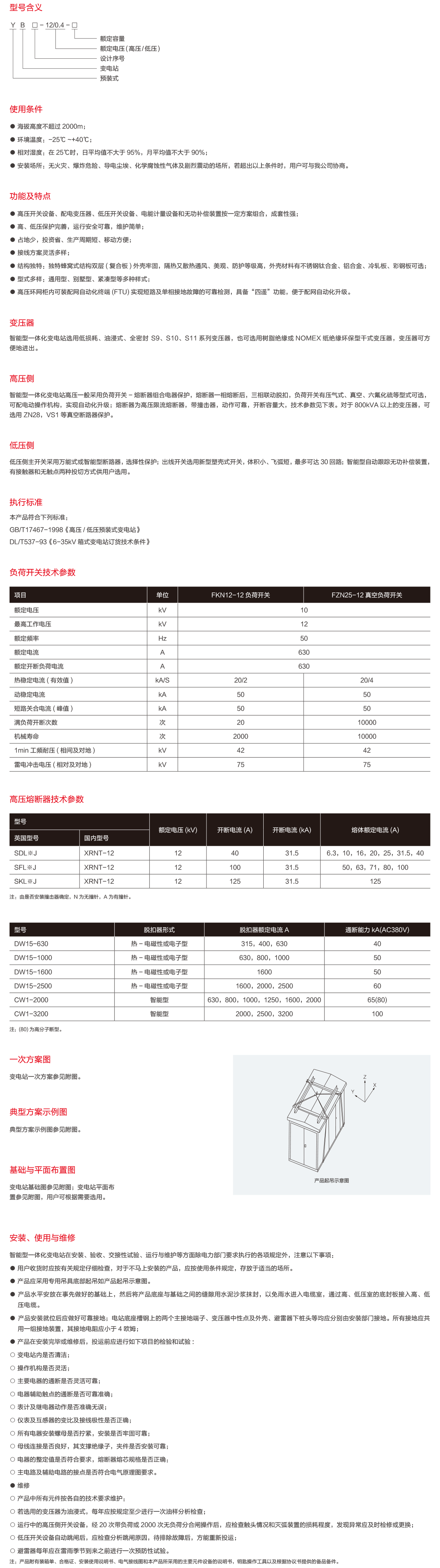 YB□-12/0.4(F·R) 户外预装式变电站(欧式)广泛用于城市电网改造、住宅小区、高层建筑、工矿、宾馆、商场、机场、铁路、油田、码头、高速公路以及临时性用电设施等户内外场所。